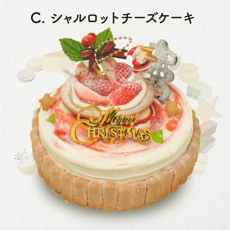 毎年人気のチーズケーキ&生クリームのクリスマスケーキです。